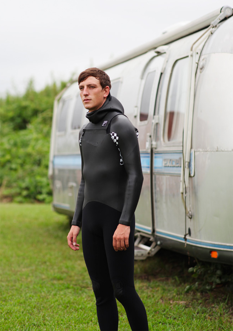 一押し掲載モデルは西海岸スタイルHOOD+CHEST ZIPタイプのセミドライ、特徴的なHOODEDスタイルが印象的で